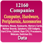 12160 Companies - Computer, Hardware, Peripherals, Accessories (Monitors, Mouse, Keyboards, Memory Cards, Mother Boards, Speakers, USB Gadgets, Hard Drive, Cabinets, RAM, CPU, Processors, Webcam, Switches Etc.) Data